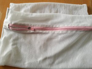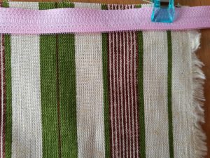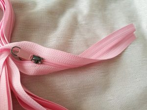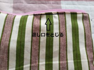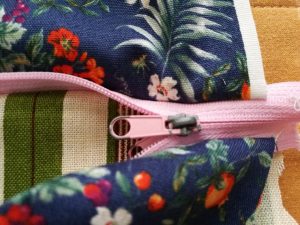 ミシンの押さえをファスナー押さえに変えて1往復ぬいます。