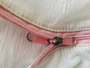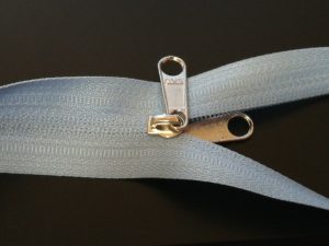 一本ファスナーにスライダー(リバーシブル用)をつけます。