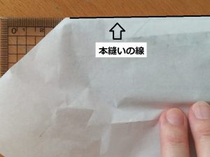 本縫いの線で谷折り(たにおり)をします。