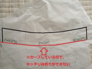 ちゃんと谷折りを見直してみたら、ウエストのカーブが谷折りを邪魔して誤差が生じていました。