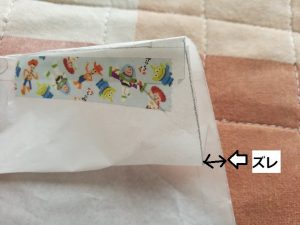 上4.5cmのところは左右2cm弱ずつ、合計3cmちょっとズレていました。